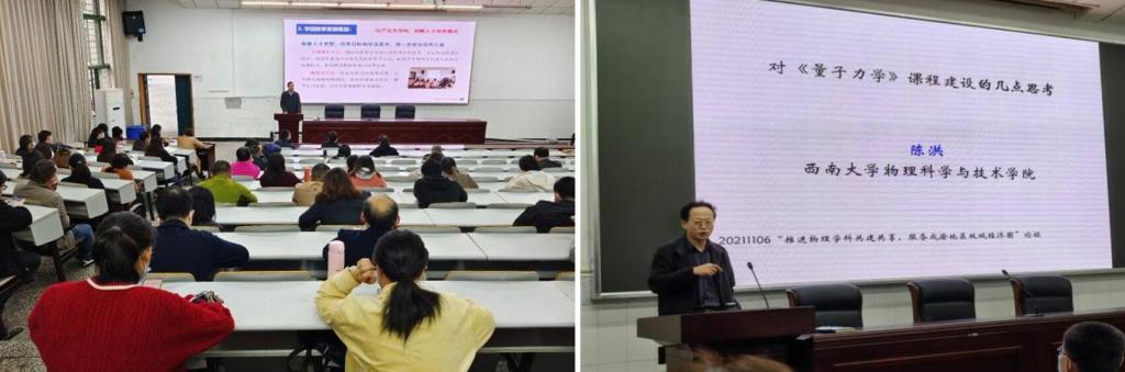 接下来,色情网址大全 陈洪教授以《量子力学》课程为例开展了第二个环节:说课程建设。陈洪教授提到,十九届五中全会以来,中央提出了的“三新一高”、“三基建一水平”,强调课程是人才培养的核心要素,课程建设的基本要求是“两性一度”,学生能力培养与课程目标设计是教师主导下的教与学的统一。教学中,不仅要将最新研究成果融入教学,还要融入课程思政元素,深度挖掘提炼专业知识体系中所蕴含的思想价值和精神内涵,科学合理拓展专业课程的广度、深度和温度,从课程所涉专业、行业、国家、国际、文化、历史等角度出发,增加课程的知识性、人文性,提升引领性、时代性和开放性。陈洪教授提倡教学中应将问题导向式互动教学和现代信息技术的应用相结合,可以采用“三助式”教学法,将学生真正放在教育的主体地位,课堂真正成为了学生自主学习、合作学习和探究学习的场所。