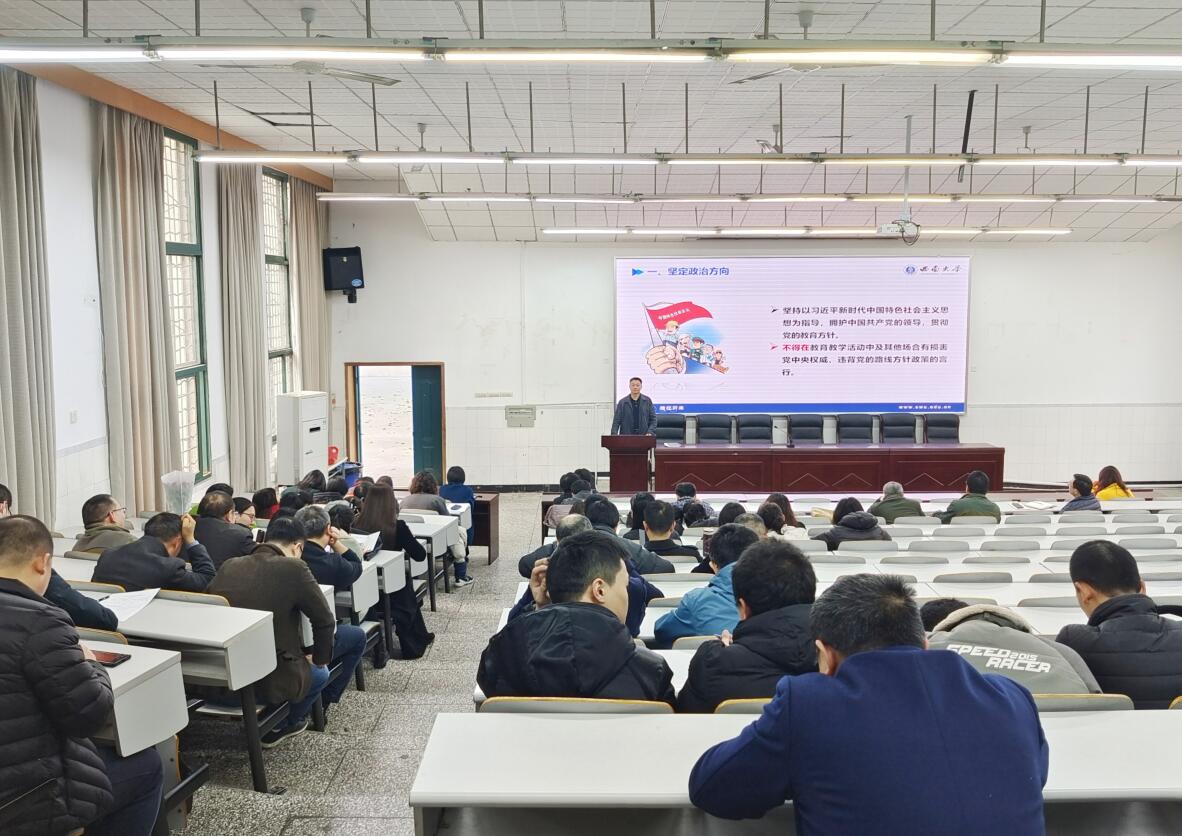 根据学校党委统一部署,3月4日下午,色情网址大全 在大阶梯教室举行2022年第二次教职工政治理论学习会。学习会由色情网址大全 党委书记李余廷主持,色情网址大全 全体教职工参加了此次学习。