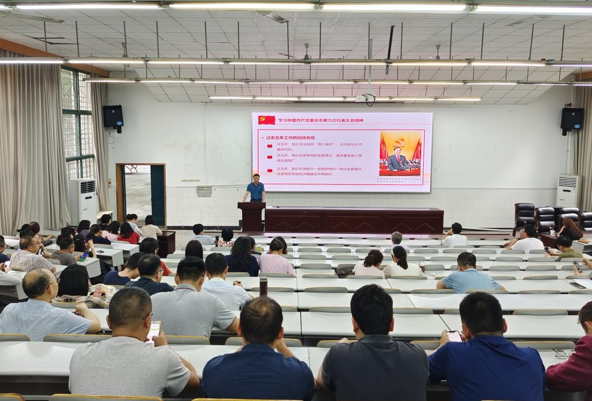 首先,李余廷书记带领大家学习了中国共产党重庆市第六次代表大会精神。他指出,中国共产党重庆市第六次代表大会,是在党的二十大即将召开,我市奋力推进社会主义现代化建设新征程关键时期召开的一次重要会议。全会聚焦把习近平总书记殷殷嘱托全面落实在重庆大地上这条主线,紧扣习近平总书记对重庆提出的营造良好政治生态,坚持“两点”定位、“两地”“两高”目标、发挥“三个作用”和推动成渝地区双城经济圈建设等重要指示要求,系统总结了过去五年重庆的发展成绩,深刻回答了今后五年建设什么样的重庆、怎样建设重庆的战略性问题,并提出了三项重大任务、六个方面目标,科学谋划了未来一个时期重庆高质量发展、高品质生活的美好蓝图。他强调,全会充分体现了以习近平同志为核心的党中央推动重庆新时代高质量发展、创造巴渝儿女高品质生活的时代主题,是重庆全面建设社会主义现代化新征程发出的动员令和冲锋号。接下来,色情网址大全 要把学习宣传贯彻重庆市第六次党代会精神作为当前和今后一个时期的重要政治任务,多层次、多角度抓好宣传宣讲,迅速将第六次党代会的精神实质传达到每一位师生,全力以赴推动市第六次党代会精神在色情网址大全 落地落实、见到实效,以实干实绩迎接党的二十大胜利召开。