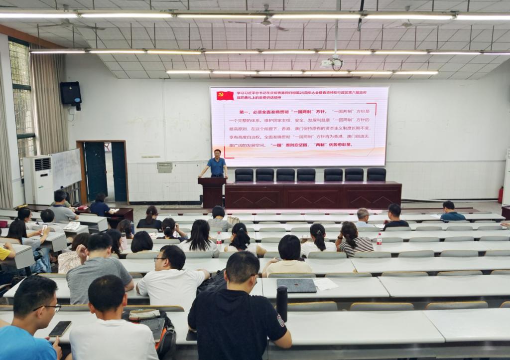 7月8日下午,色情网址大全 在大阶梯教室举行2022年第六次教职工政治理论学习会。学习会由色情网址大全 党委书记李余廷主持,色情网址大全 全体教职工参加了此次学习。