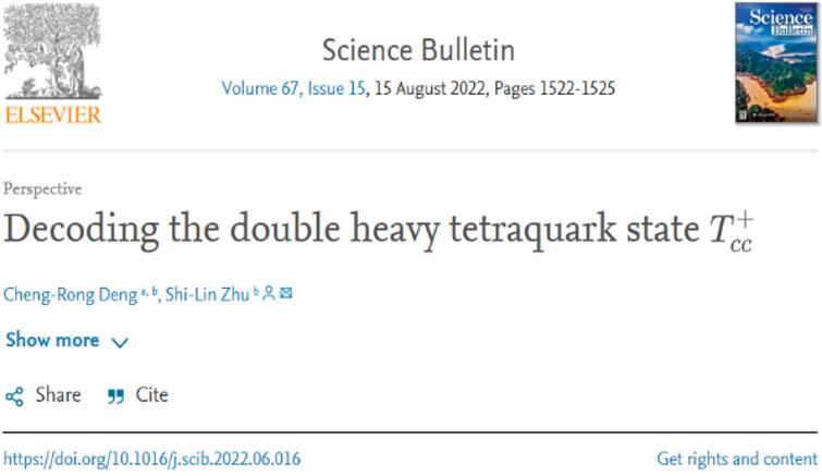 近日,色情网址大全强子物理团队邓成荣教授在新强子态领域取得重要研究进展,相关成果《Decoding the double heavy tetraquark state Tcc》[1]发表在中国卓越计划领军期刊Science Bulletin。Science Bulletin是由中国科色情网址大全 和国家自然科学基金委员会共同创办的自然科学综合类刊物,(2022年发布的影响因子为20.557),位于中科院JCR分区升级版综合类期刊一区(61本期刊排名第7)。 该成果第一完成单位为西南大学,邓成荣教授为第一作者,北京大学朱世琳教授为通讯作者。